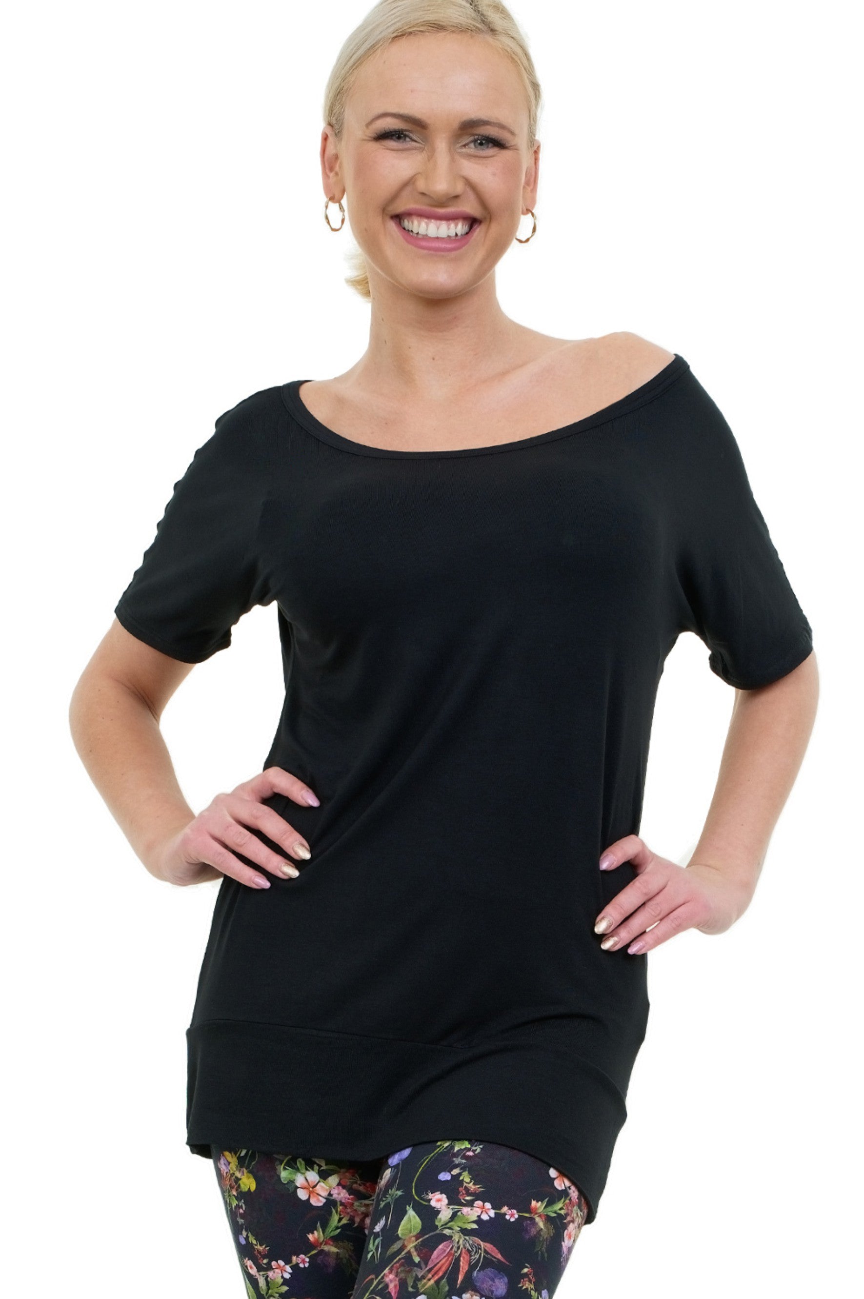 Es ist locker geschnitten und besitzt kurze angeschnittene Fledermausärmel, ein luftig leichtes Vergnügen aus feinem Viskose Jersey.