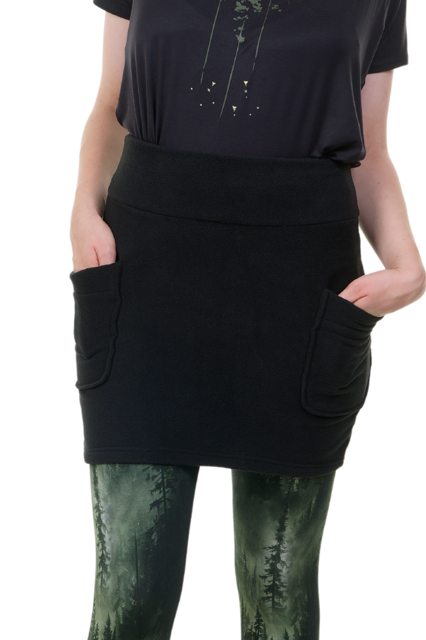 Der Fleece Rock fungiert als prima Nierenwärmer, so ist er perfekt für die kalten Tage im Jahr geeignet. Der schlichte Bleistiftrock lässt sich super zu den verschiedensten Outfits kombinieren. Dabei hast du immer zwei Taschen dabei, die seitlich auf den Rock aufgebracht sind. Super fürs Handy und die anderen kleinen Dinge, die Frau gerne mit sich trägt.